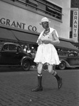Shriners. Ring candidates. Cash Dean, novice shown with shorts showing as he masquarades in feminine