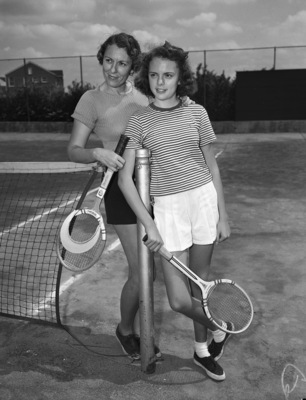 Sports. Mrs. Henry Lawrence, left, and daughter, Mary Prescott, tennis players.