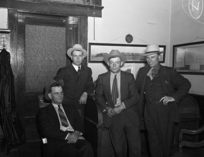 Boys in Fort Worth, Texas, to market livestock. Group of men who brought the Gaines County boys to Fort Worth, Texas, left to right, County Agent C. E. Morris, Leo L. White of Loop, Rancher Tom Hunt and Walker P. Tood of Seagraves.