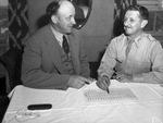 West Texas Chamber of Commerce. Convention. J. S. Bridwell, left, Wichita Falls, Texas, president of West Texas Chamber of Commerce, and Major Crump Garvin, transportation officer of Camp Wolters.
