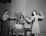 Actors; Students; Theatrical productions; Comedies; Dresses; fencing; Newspapers; Chairs; Costumes; June Mad; Lazzara, June; Jones, Naomi Ruth; Bryant, Jack; Cummings, Guy L.