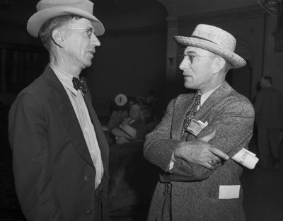 J. L. Willson, Floydada, Texas, left, and Hamlin Overstreet of Farwell at West Texas Chamber of Commerce Convention.