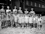 Glen Rose first graders in Fort Worth. First row, left to right, John William Luedke, Sterling Pruitt Junior, Herbert Johnson, Opal Brashears, Frances Vankirk, Aletha Lane, Frieda Hewlett, Margaret Howleth, Mary Evelyn Baker and Roy Lee Owens. Second row, Dayton York, Joe Don Cmap, Donald Threadgill, Virginia Kimbrell, Charley Frank Sparks, Leonard Shannon, Gerald Stewart, Jean Holden, Franklin Howeth, Harold Massey. Third row, Jack W. Bridges Junior, Billie Turner, Floyd Hall Flanary. William Earl Mimms. Joyce Ann Pruitt , Ruth Strickel, Allie Merl Thompson, Mary Ellen Pruitt, Fannie May Thompson, George Keenum and Helen Johnson. The sponsors, left to right, Mrs. Sterling Pruitt, Mrs. Jerad Bartley, Mrs. Ed Mimms, Mrs. A. A. Pruitt, Mrs. Gwendolyn Gibbs and Mrs. C. A. Milam Junior, teacher.
