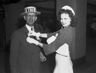 West Texas Chamber of Commerce. Convention in Mineral Wells, Texas. The photograph shows L. A. Wilson, manager of Waco Chamber of Commerce; and Mary Frances Carter, Midland, Texas.
