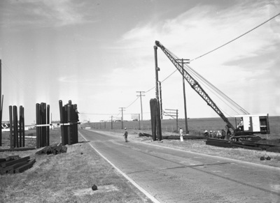 Bomber Plant rail spur Construction work on overpass where T and P rail will cross highway ten.