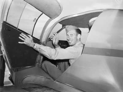 Globe Aircraft Corporation. First Plane. J. V. Boyer in the plane.