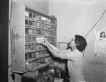 Mrs. W. B. Jones, shown with her collection of post cards.