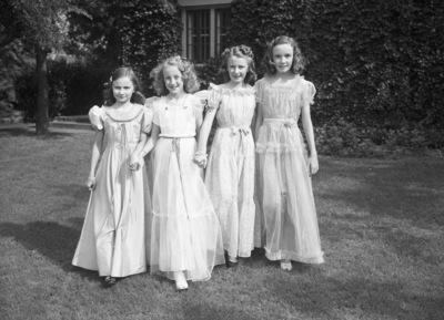 Left to right, Nancy Moses, Patsy Rand, Mary Lou Miller and Dorothy Jean Cline, Oakhurst graduates planning to be given party.