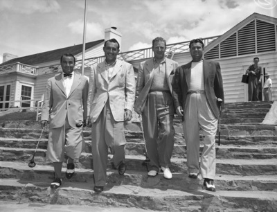 Left to right, Gene Sarazen, Vic Ghezzi, Craig Wood and Jimmy Demaret attending U. S. Golf Association tournament.