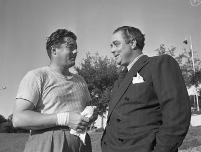 Left to right, Lawson Little and John Montague at U. S. Golf Association tournament.