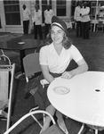 Mrs. Chick Harbert, wife of golfer at U.S. Open Golf Tournament, Colonial Country Club, Fort Worth, 06/01/1941. Harbert sits at a table watching the tournament.