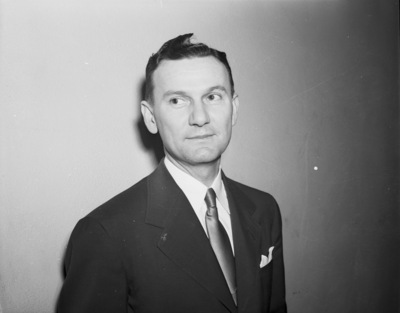 Doctor M. H. Crabb is a new member of the Board of Medical Examiners. Dr. Crabb is standing in front a blank wall, wearing a suit and a necktie. He is looking off to his right.