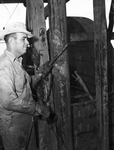 Cooper Blount, driller, of the crew working on the new wildcat test started in southeastern Jones country.