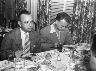 U. S. Open Golf Association open tournament. Left to right, Harry Ferguson, New York, New York sports writer, and Dick Gould, staff photographer for the Acme Photo Service, Fort Worth, Texas.