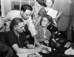 A scientific modern method, telebinocular test classification was studied at a reading clinic sponsored by Texas Christian University's (TCU) education department. Miss Emma Miller, left, teacher at Alexander Hogg School, giving the test to Mrs. Baylor Brown, of D. McRae School. Thomas Cunningham, postgraduate student at Texas Christian University (TCU) is assisting. Published in the Fort Worth Star-Telegram morning edition, June 8, 1941.
