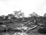 Image shows a unidentified group of searching for victims of a flood amongst debris in Albany after leaving the area with 12 drownings and 15 injuries. The flood had 20 foot wall of water that broke over the town when the dam crumbled.