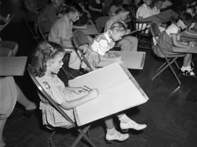 Shirley Jean Adams, daughter of Mr. and Mrs. O. W. Adams, drawing at Public Library Recreational Summer art Series.