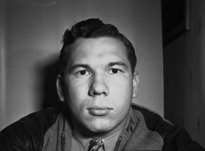 Bobby Sherrod is a linebacker with the Texas Christian University football team. He was part of the unbeaten 1938 Horned Frogs that were crowned National Champions. Bobby is attending the Southwestern Congress of Optometry's Conference at the Hotel Texas. Dr. A. R. Reinke, an optometrist who works with the University of California, Berkely, demonstrated his research on Bobby. Dr. Reinke is explaining how defects in the eyes can be remedied to improve performance and has evaluated Bobby's eyes. Bobby says his vision to the left often leaves him wide open for a block. Published in the Fort Worth Star-Telegram morning edition, February 6, 1940.
