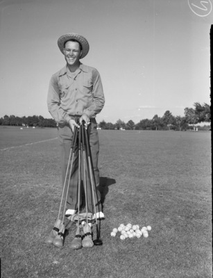 Golfers. J. T. Hammett, holding five golf clubs.