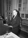 The photograph shows A. H. Gass of Washington D. C., manager of the military transportation section of the Association of American Railroads.