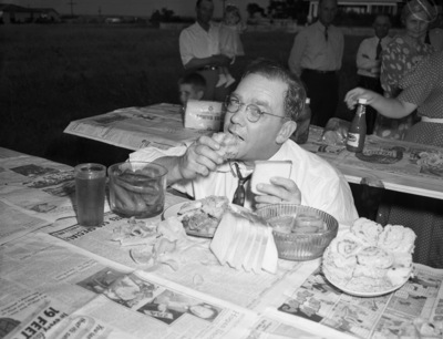 Reverend Jack Lawson eating at the Worth Heights Baptist Church fish fry.