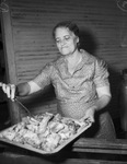 Reverend R. E. Bass, pastor, frying fish at the Worth Heights Baptist Church fish fry.