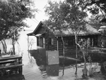 Image shows high water at Eagle Mountain Lake. View of the John Roach Camp at Eagle Mountain Lake, nearly covered by high water. The camp could only be reached by boat. Water stood more than two feet over the first floor level and docks extending from the front of the camp were submerged under four feet of water. A cabin is shown surrounded by water that indicates the high water level. Published Fort Worth Star-Telegram Evening Edition June 12, 1941.
