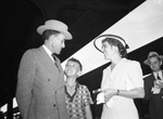 This is a member of the Fort Worth Chamber of Commerce delegation, shown just before his departure Friday from the Texas and Pacific Railway Station in three special cars. The members are due to arrive in the national capital Sunday morning for two events preliminary to a hearing Monday before the Board of Engineers for Rivers and Harbors on justification of the comprehensive Trinity River improvement program. Here, A. S. Billingsley, secretary-manager of the Retail Merchants Association, is saying farewell to Mrs. Billingsley and their son, David.
