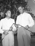 The photograph shows Golfers, Charley Moore and Harry Todd looking at golf clubs.