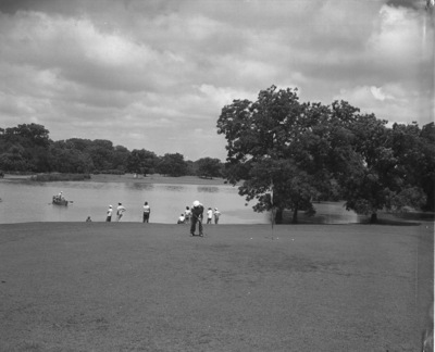 Golfers at Rockwood Golf Course next to lake, 06/15/1941