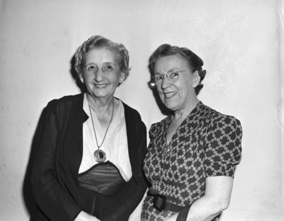 The photograph shows left to right, Mrs. W. D. Van Blarcom and Mrs. Nellie H. Moore, both of Bakersfield, California.