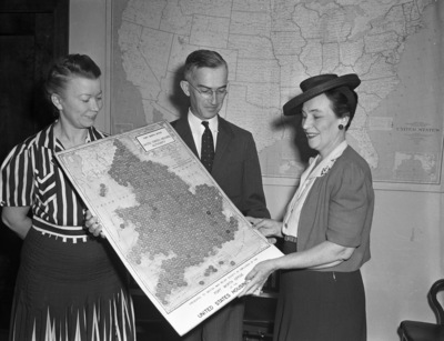 Dimes for Britain. Left to right, Mrs. Lois Arnold, Marshall W. Amis, regional director of the USHA and Mrs. C. R. Goodrich.