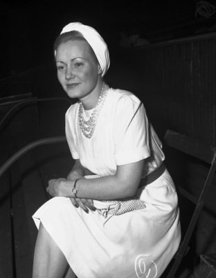 McDowell, Clyde; McDowell, Clyde (Mrs.); Dresses; Jewelry; Purses; Headscarves; Chairs; Necklaces; Baseball players; Fort Worth Cats (Baseball team)