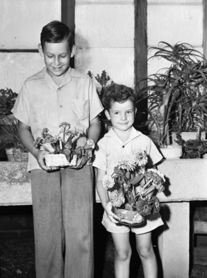 Garden Club. "Second Generation" Flower Show. Billy Zant, first prize winner and Billy Meeker, second prize winner.