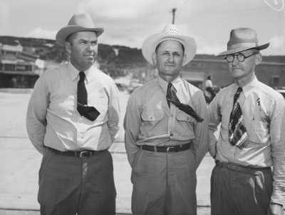 Santa Anna Rodeo. Left to right, W. T. Stewardson, C. E. Kingsberry, and J. D. Motley.