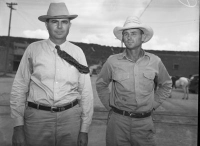 Santa Anna Rodeo. Georege M. Johnson, mayor and president of the rodeo association , and C. D. Bruce, rodeo director.