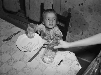 Star-Telegram Free Milk Ice Fund. Child holding up an empty glass.