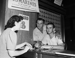 Image shows the registration of registration of Tarrant County's 21 year old's. Jack and Jimmie Dean of Everman, twins registering. On left the registrar is Mary Lowry at reception desk.