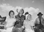 Residents 150 miles around Possum Kingdom Dam, were well represented at the dam dedication, July 2nd. Among the 2,000 attendees are , left to right, Bonnie Sue Chestnut, 8, daughter of Mrs. E. P. Chestnut; Mrs. W. G. Christie, and her daughter, Imogene Christie, 6, all from Stephenville, Texas. They are seated and wearing sunbonnets to protect themselves from the bright, hot sunlight. Published in the Fort Worth Star-Telegram morning edition, July 3, 1941.