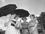 Attending the Possum Kingdom Dam dedication, July 2nd are residents of Grandview, Texas, left to right, Mrs. A. C. Ingle, Mrs. Charles Williams, Mrs. Kennard Williams and Mrs. A. T. Leslie. They are holding umbrellas to shield themselves from the sun.