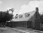 On the fruit and stock farm of J. S. Trapp is his nine-room Cape Cod country home which he remodeled from a 65-year old farm dwelling. His property sits west of Fort Worth on Highway 80. His house shows three dormers and a large screened porch with a fireplace at each end of the house. Mr. Trapp retired nine months ago after 43 years in the telephone business and has worked many years on this dream farm and home come true. Published in the Fort Worth Star-Telegram morning edition, July 6, 1941.
