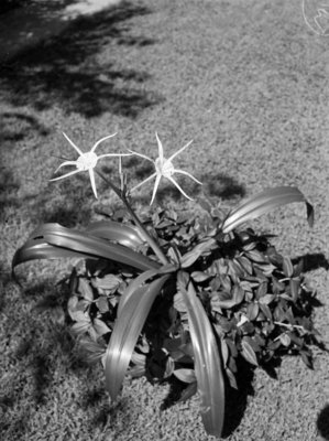Flowers in Fort Worth yards. Strange blossom in the yard of Mr. and Mrs. W. C. Pool. It is the South American Amarylis.