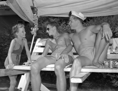 England, Joyclan; Padon, Bill; Cowling, Bob; Forest Park Pool; Lifeguards; Shorts; Swimming pools; England, Lillian (Mrs.)