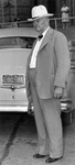 James E. Ferguson, or "Pa" Ferguson, is shown in front of the Texas Capitol as he visited the office of Bill Lawson, Secretary of State, while the ballot count for the election of Governor O'Daniel was in progress.