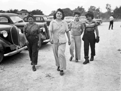 Texas and Pacific Railway Shops. Left to right: Mary Moreno, Maxine Calva, Alice Ezocar and Mary Menchaca.