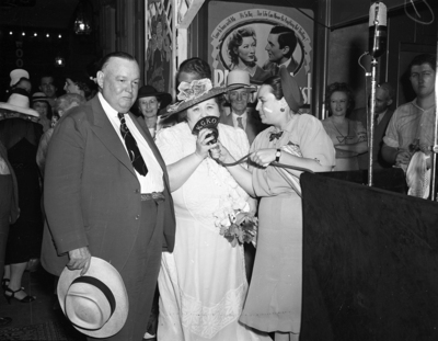 Fort Worth premiere of movie "Blossoms in the Dust," starring Greer Garson about Edna Gladney and her charity; from left, Mayor I.N. McCrary, Edna Gladney, and Mary Sears of the Star-Telegram.