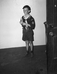 Cecil Ray Junior is proudly displaying his application for a defense bond purchase. He has saved $37.50, built mostly by saving silver dollars. He is the nine-year-old son of Mr. and Mrs. Cecil Ray Senior. Cecil is a member of the Boy Scouts Den 4, Pack 443, at Arlington Heights Methodist Church. He is dressed in a Cub Scout uniform.