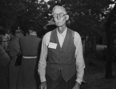 The 45th annual Cowboy Reunion and Rodeo is being held in Seymour, Texas, on July 24 and 25. One of the long-time residents in attendance is 85-year-old J. H. Henson. He moved to the area in 1883. Mr. Henson is dressed in a button-up shirt, vest and trousers.