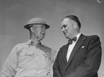 The Thirty-sixth Division, all-Texas unit, made its final appearance in review Saturday at Camp Bowie before departure early next month for extensive maneuvers in Louisiana and East Texas. It started its occupation of the Brownwood camp last December and began its current training program January 13th. Colonel E. O. Thompson, left, recently transferred from command of the 111th Quartermaster Regiment to command of the 141st Infantry, a unit drawn from the San Antonio, El Paso, and Rio Grande Valley areas. Here Colonel Thompson greets an old friend, Lieutenant Colonel Lewis R. Bryan, Houston banker, who was formerly G-3 of the 36th.