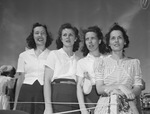 Spectators from Fort Worth, Texas, at the 36th Division review at Camp Bowie included, left to right, Misses Mildred Wheeler, Bobbie Wreay, Joy Howard and Mae Smith. Misses Wheeler, Wreay and Howard are wearing collared blouses and skirts. Miss Smith is wearing a striped dress.